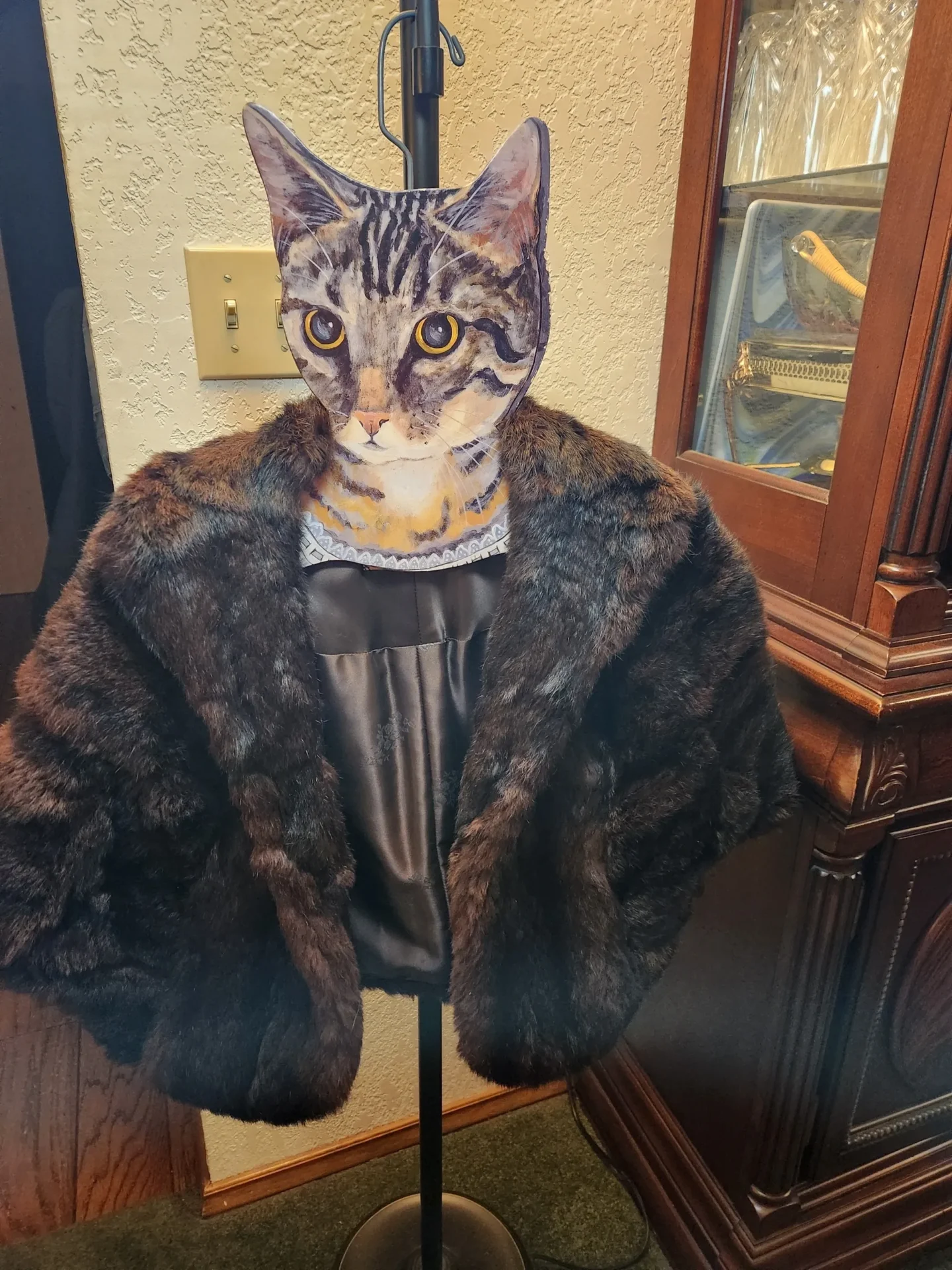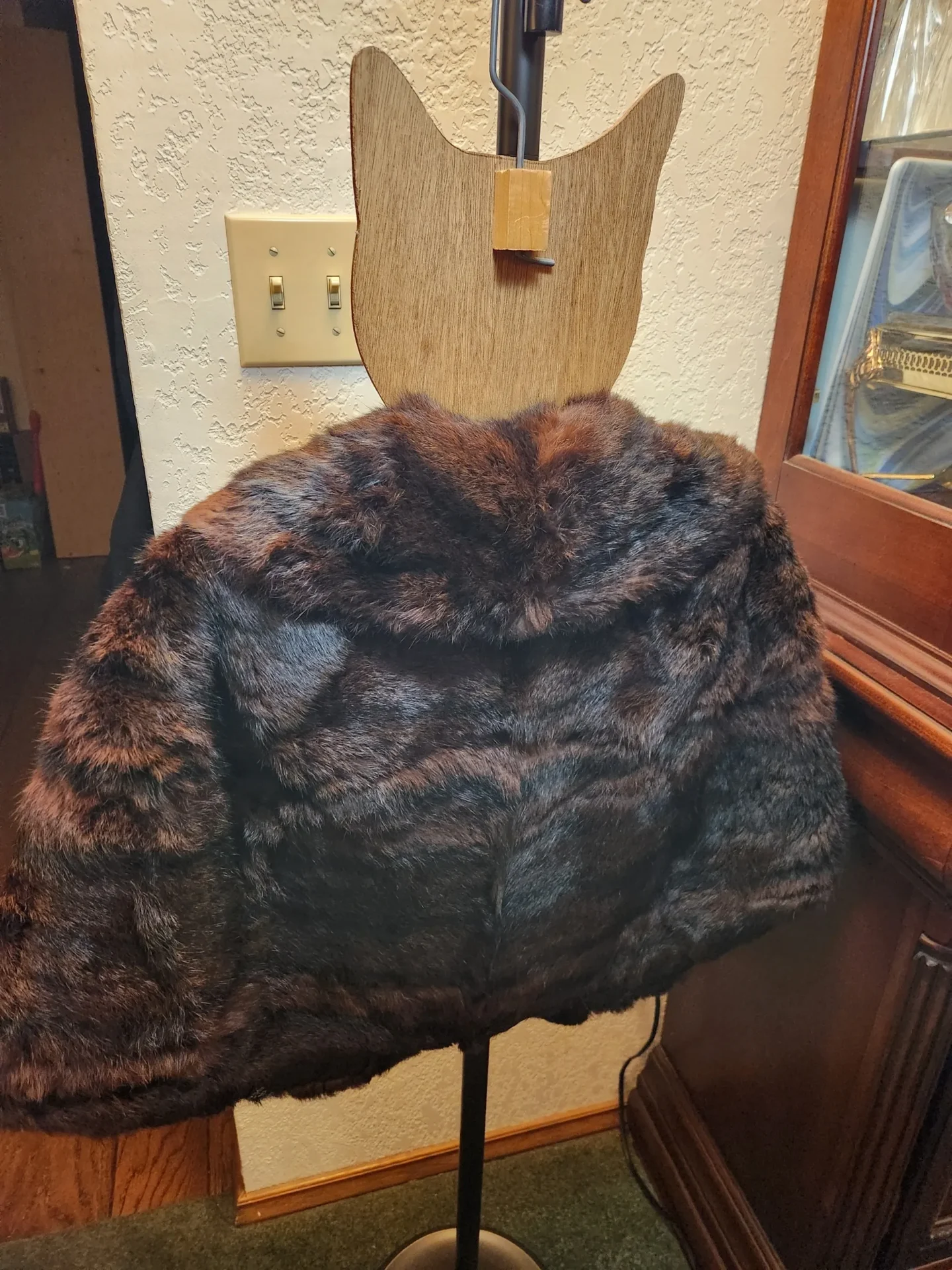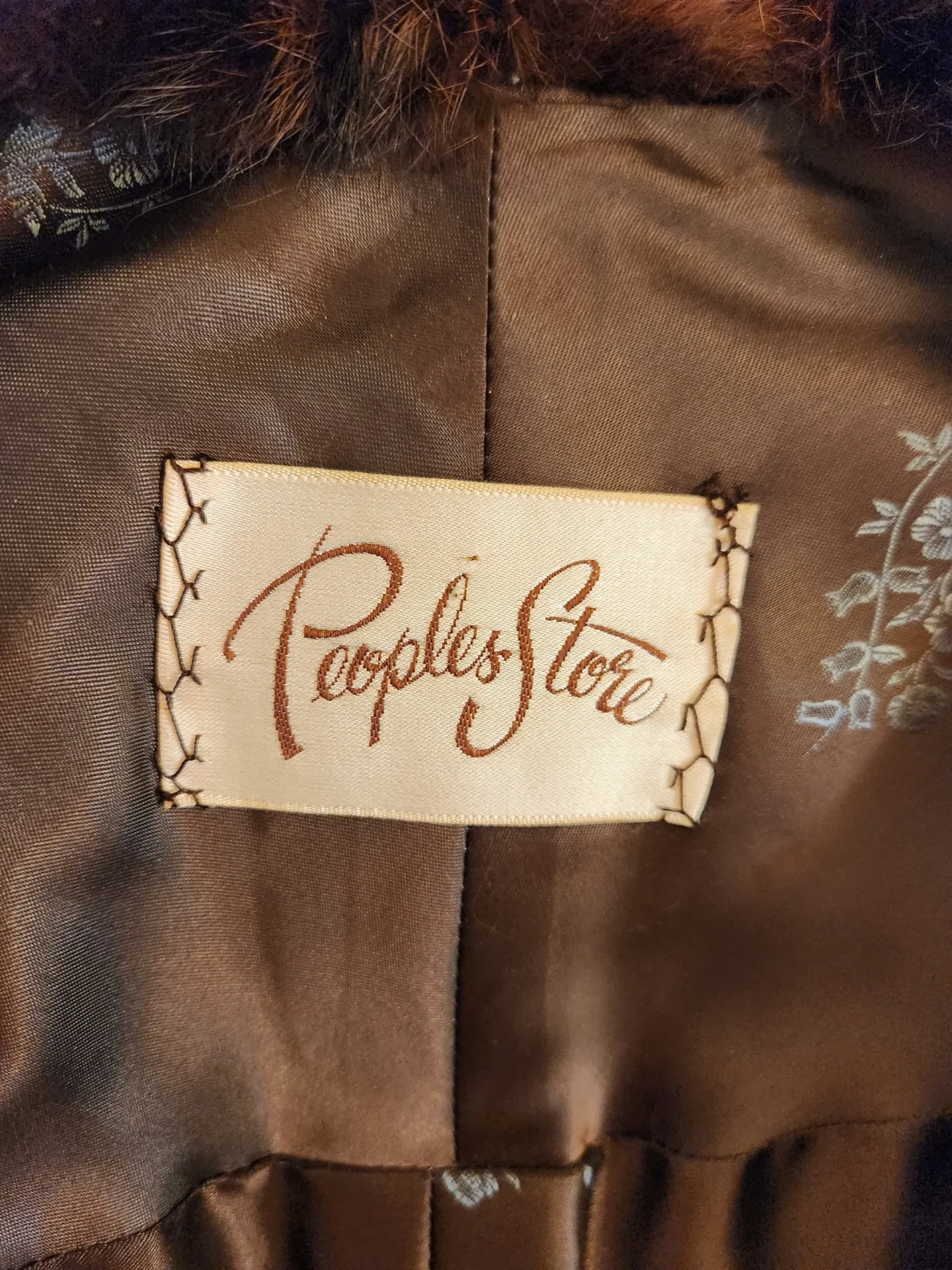 This vintage Peoples Store fur has a soft touch and the rich dark brown and black makes it easy to wear with either black or brown attire. The collar ends just a bit below the bust.